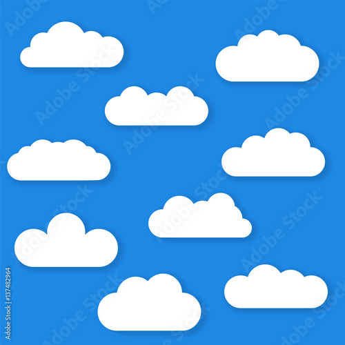 Set of Cloud Icons in trendy flat style isolated on blue background. Vector illustration of clouds collection