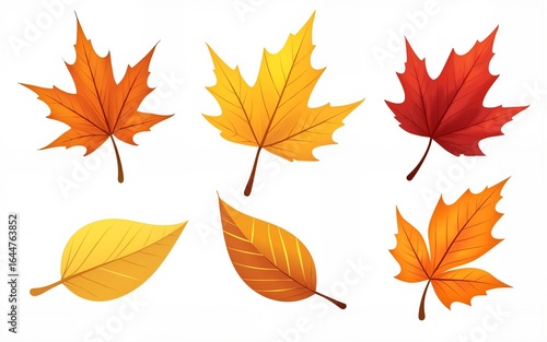 Set of colorful autumn leaves. Yellow and red dry foliage isolated on white background. Vector eps 10. High quality