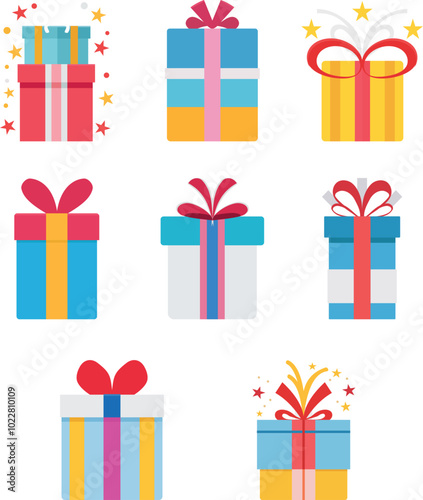 gift, box, christmas, present, birthday, ribbon, bow, celebration, vector, holiday, illustration, surprise, package, decoration, christmas, icon, set, design, happy, gift, valentine, colours, shopping, card, paper