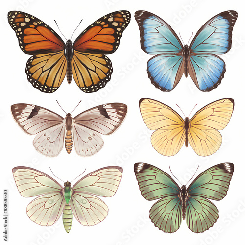 set of colorful butterflies isolated on white background