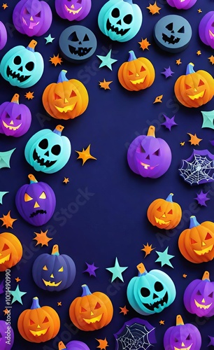 set of colorful halloween pumpkins