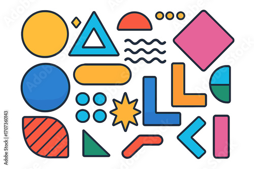 shape, geometric, abstract, modern, colourful, design, vector, illustration, background, pattern, retro, vintage, memphis, style, icon, set, collection, element, circle, square, triangle, line, wave, doodle, simple, basic, creative, poster, banner, print, decorative, texture, art, graphic, pop, trendy, vibrant, bright, contemporary, figure, form, symbol, minimal, funky, sticker, wallpaper