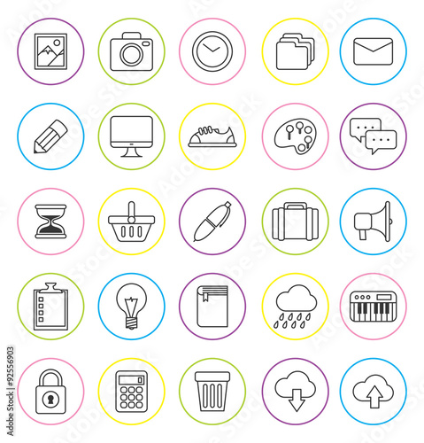 paint, icon, photo, lock, outline, white, cloud, interface, business, bulb, vector, signs, sand, line, symbol, app, light, graphic, pen, element, simple, megaphone, shoe, computer, modern, flat, illustration, computing, shopping, mobile, folder, web, design, weather, briefcase, crayons, calculating machine, mail, cart, thin, stroke, background, application, chat, camera, ios, notepad, screen, clock