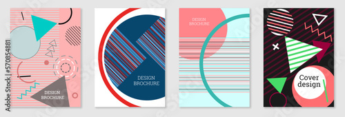 Set of cover design in Memphis style. Geometric design, abstract background. Fashionable bright cover, banner, poster, booklet. Creative colors.