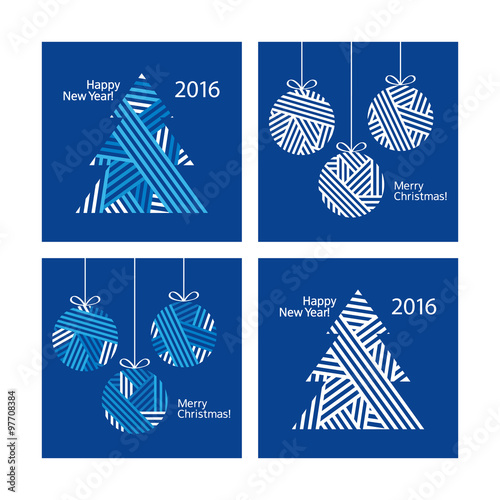 Set of creative 4 Christmas cards. Happy New Year 2016. Merry Christmas. Christmas Posters set. Template for Greeting Congratulations, Invitations. Vector illustration.