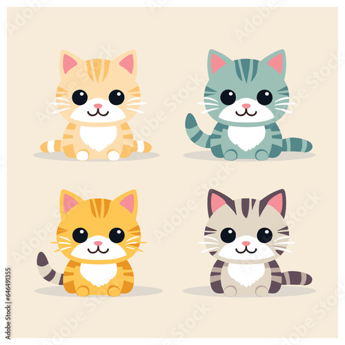 cat, cat, felino, cute, kitten, adorable, group, set, vector, illustration, cartoon, whisker, paw, playful, pet, animal, domestic, sweet, eye, tail, fur, fluffy, lovely, multiple, family, mammal, happiness, huddle, cuteness, purr