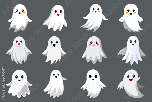 Set of cute funny ghost different emotions and facial expressions, Baby boo characters for kids trendy vector illustration for Halloween
