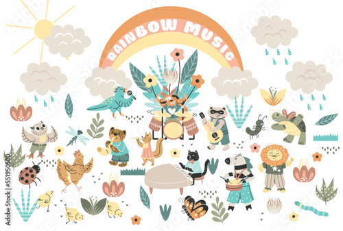 music, cute, animal, baby, childish, cartoon, flat, happy, art, background, bear, birthday, card, celebration, character, children, clip art, colourful, dancing, forest, friends, funny, hand-drawn, illustration, jazz, jungle, lion, melody, raccoon, cat, turtle, rainbow, positive, charming, piano, musician, owl, party, performance, play, poster, print, saxophone, scandinavian, set, style, vector, zebra, zoo, object