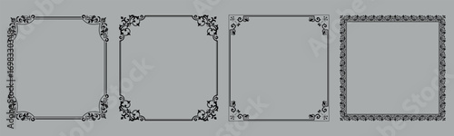 Set of decorative frames Elegant vector element for design in Eastern style, place for text. Floral black and gray borders. Lace illustration for invitations and greeting cards