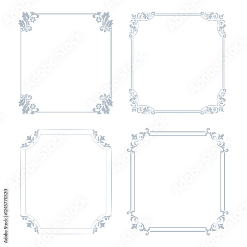 Set of decorative frames Elegant vector element for design in Eastern style, place for text. Floral gray and white borders. Lace illustration for invitations and greeting cards