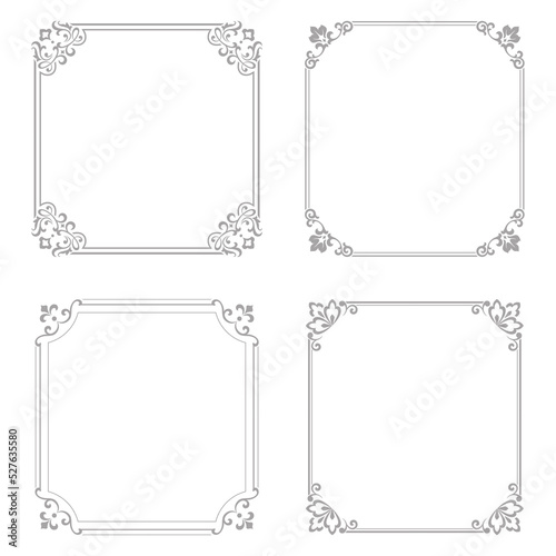 Set of decorative frames Elegant vector element for design in Eastern style, place for text. Floral gray and white borders. Lace illustration for invitations and greeting cards
