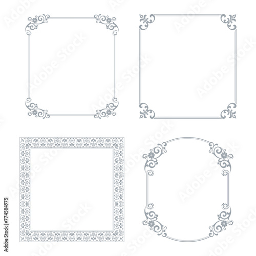 Set of decorative frames Elegant vector element for design in Eastern style, place for text. Floral gray and white borders. Lace illustration for invitations and greeting cards