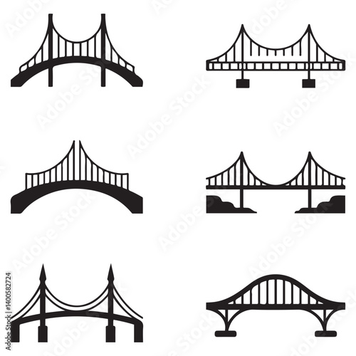 Set of different bridges. Isolated on white background. and white. Vector Black silhouettes. illustration.