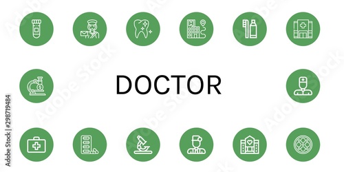 Set of doctor icons such as Medicine, Postwoman, Healthy tooth, Hospital, Dental hygiene, First aid kit, Pills, Microscope, Doctor, Hospice, Surgery lamp, Nurse , doctor