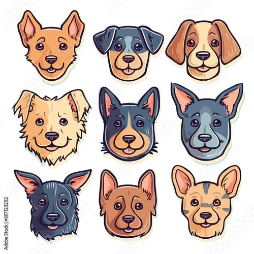 animal, dog, animal, cartoon, vector, illustration, icon, pet, face, collection, fun, head, set, dog, cute, isolated, puppy, breed, white background, brown, puppy