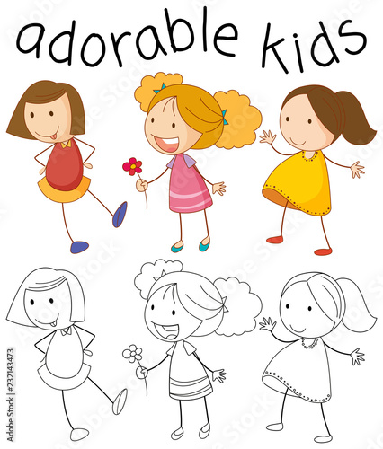 doodle, line, outline, character, vector, illustration, people, cartoon, design, drawing, adorable, cute, girl, isolated, smile, happy, graphic, picture, clip art, clip art, clip, art, background, image
