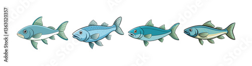 Set of Dynamic Wildfrost Fish Illustration with Unique Features
