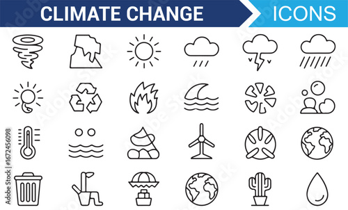 Set of Environmental and Sustainability Icons for Climate Change Projects