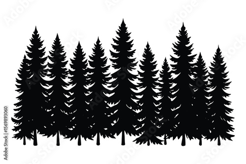 tree, christmas, winter, forest, snow, pine, holiday, fir, nature, vector, illustration, celebration, landscape, green, season, decoration, tree, christmas tree, christmas, evergreen, wood, tree branch, silhouette, design, card