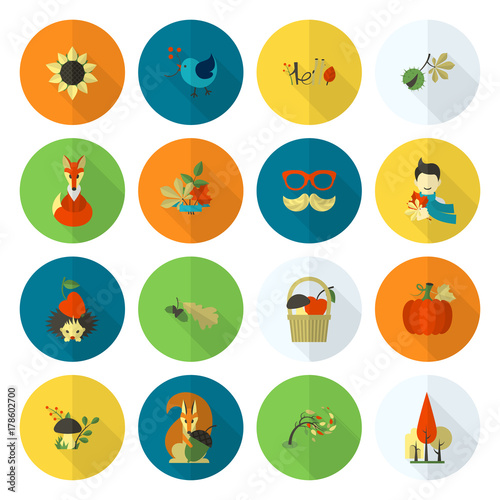 Set of Flat Autumn Icons