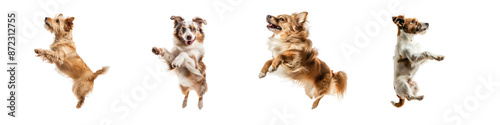 Set of floated dog jumping gesture try to bite something in the air isolate on transparent background