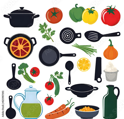 food, vegetable, fruit, pot, pan, vegetable, apple, isolated, tomatoes, orange, collection, healthy, set, icon, diet, vector, fresh, illustration, white, strawberry, banana, pear, green, lemon, pineapple, vegetarian, salad