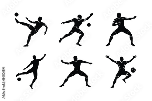 sport, vector, player, football, athlete, set, goal, ball, illustration, team, people, graphic, male, person, kick, match, pose, soccer, man, action, design, competition, game, silhouette, background, isolated, collection, active, white, professional