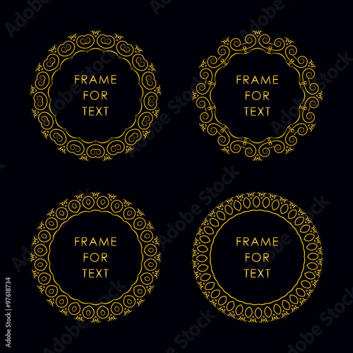 Set of four elegant golden frame isolated on black background