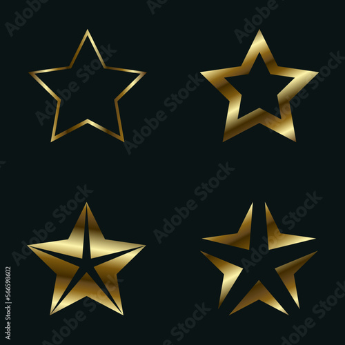 SET of four luxury star, golden star light, premium star shapes, symbols, icons vector illustration design.