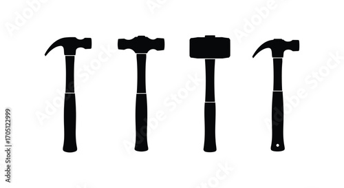 hammer, tool, construction, bricolage, silhouette, set, collection, claw, sledgehammer, hand, equipment, workshop, building, renovation, repair, labor, industry, heavy, duty, craftsmanship, carpenter's shop, metalworking, black, and, white, icon, graphic, design, element, isolated, object, work