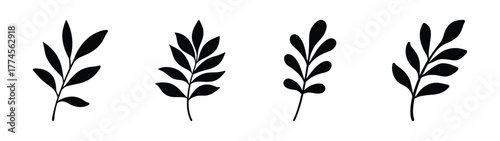 Set of four stylized black botanical leaf sprigs abstract minimalist nature elements