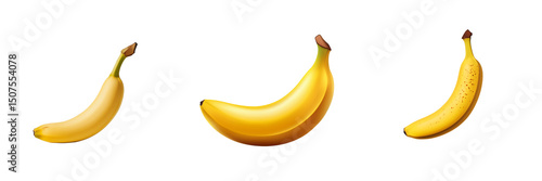 Set of Fresh yellow banana centered on a vibrant yellow backdrop, seamless on transparent png background. Ai generated