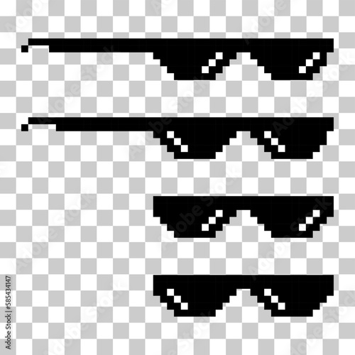 Set of fun retro pixel sun glass icon, life style meme sunglasses thug, vector illustration