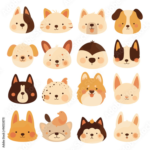 animal, cartoon, vector, set, bear, cat, pattern, seamless, dog, illustration, lion, baby, icon, children, character, tiger, horse, fun, infantile, children, cow, pet, face, cute, plush, head, animal, fox, pig, rabbit, collection, panda, zoo