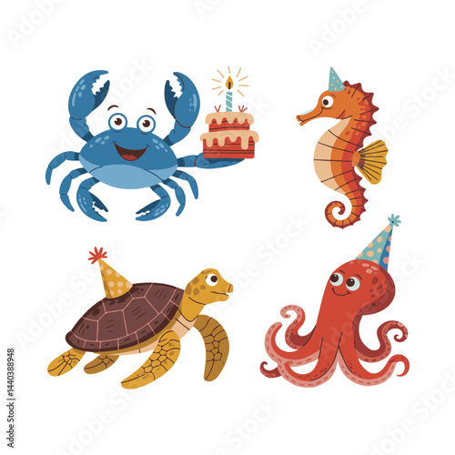 cartoon, animal, vector, fish, illustration, sea, animal, set, bird, baby, collection, funny, octopus, owl, nature, wild, design, ocean, pattern, turtle, cat, character, zoo, children, icon