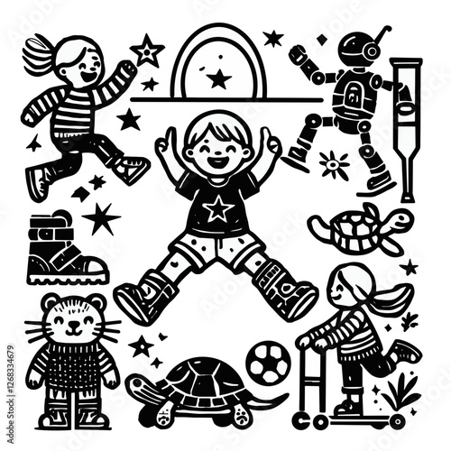 cartoon, illustration, vector, sport, people, boy, children, art, woman, funny, fun, halloween, set, drawing, character, music