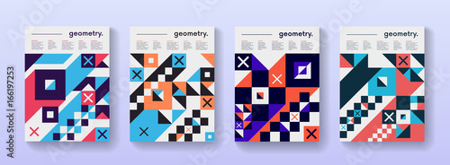 Set of geometric poster cards flat design. Applicable for Placards, Covers, Flayers, Banners, Brochures.
