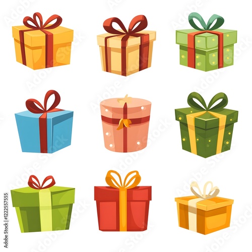 gift, box, present, holiday, bow, ribbon, celebration, vector, surprise, decoration, illustration, package, christmas, three-dimensional, shopping, gift, icon, paper, set, anniversary, greeting, happy, new