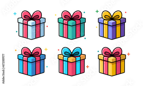 Set of gift boxes with ribbon. Christmas, Valentine's Day, and Happy Birthday Day. Vector illustration.