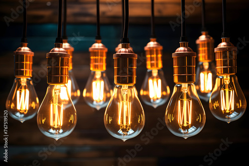 set of glowing electric lamps in a cafe room. electric lamp. home interior and equipment. lighting in the house