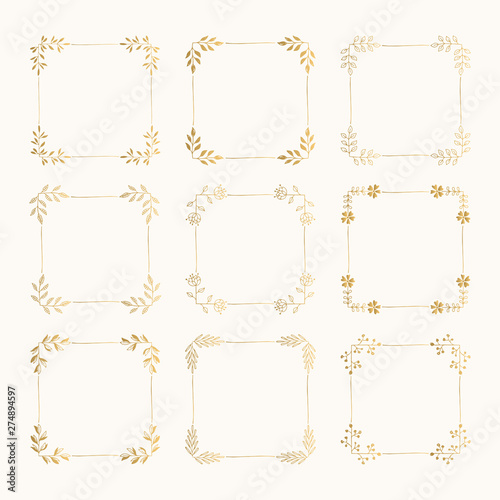 Set of golden squared frames. Wedding design template.