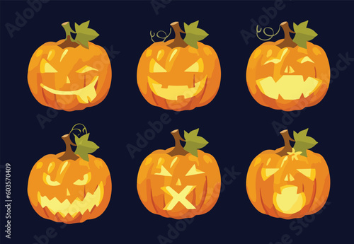 set of Halloween vector art of a pumping with face .different emotions