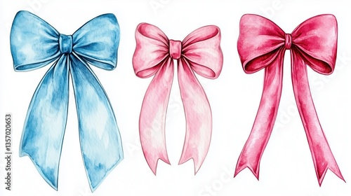 bow, watercolor, blue, pink, isolated, white, vector, illustration, clip art, sticker, detailed, artistic, design, decorative, elegant, pastel, hand-made, colourful, pattern, texture, gradient, abstract, background, element, set, collection, retro, vintage, classic, minimal, modern, creative, branding, cardboard box, label, invitation, stationery, print, digital, card, wedding, party, celebration, craft, art, professional
