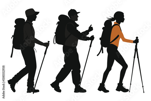 set of Hiker Illustration vector silhouettes