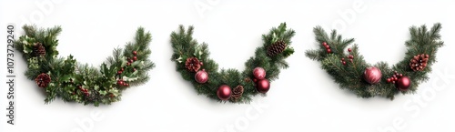 Set of holiday decor with stunning christmas wreaths featuring pine cones and ornaments isolate on white background