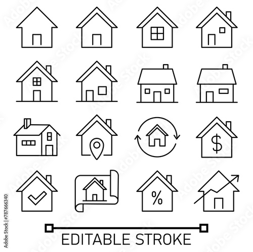 Set of house in modern thin editable line style. home symbols for web site design and mobile apps. Simple linear house pictograms on a white background.