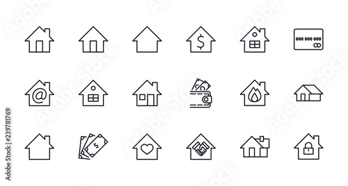 Set of house vector line icons. Contains symbols of the conclusion of the contract, heart, a drop of water, fire, money and many other things. Editable move. 32x32 pixels.