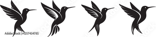 set of hummingbird silhouette, black and white silhouette, vector and illustration