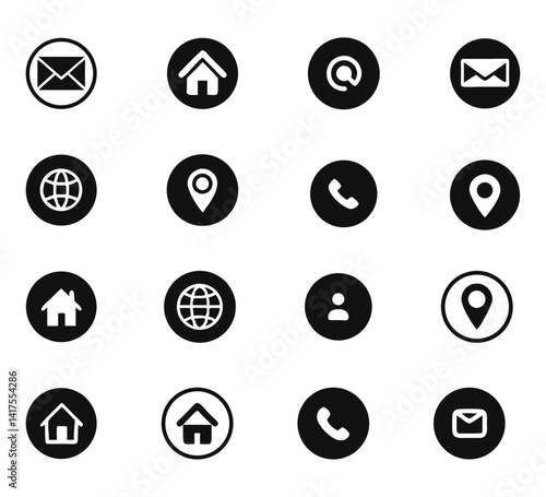 icon, buttons, web, vector, set, symbol, icon, signs, buttons, cyberspace, illustration, design, computer, communication, website, circle, business, phone, round, collection, glossy, black