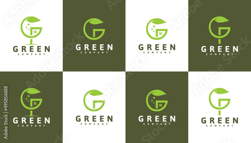 set of initial letter G with circle and leaf concept, logo inspiration.